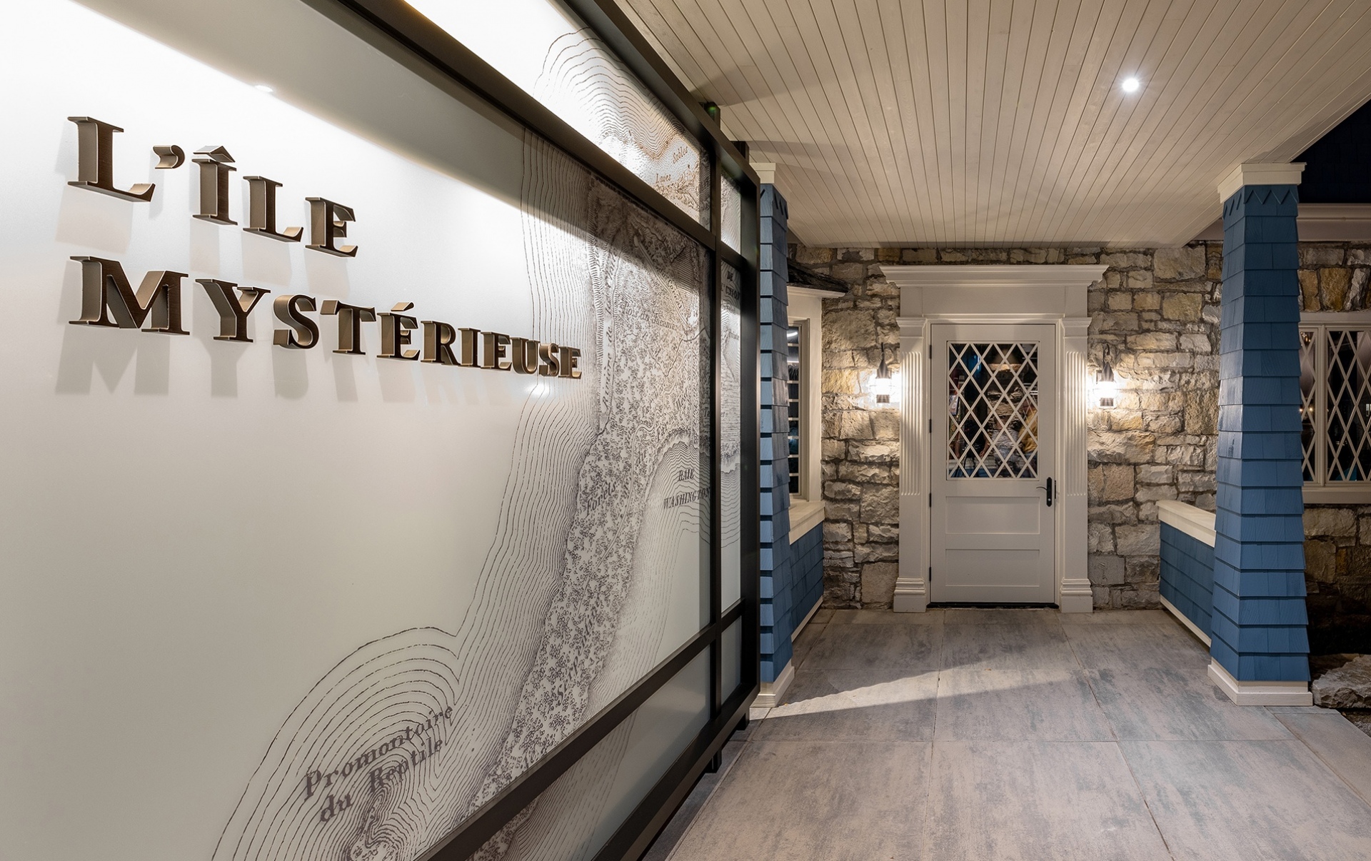 A real estate opportunity presented itself that allowed the client to convert his dream into reality, when he bought the building next door to the Auberge Truchon in Pointe-au-Pic, which he also owns. To enhance the offer to local and tourist clientele, he created an entire ecosystem around the museum, adding a restaurant-lounge and boutique. The result is Île Mystérieuse, named after the Jules Verne novel (The Mysterious Island) detailing the tragic end of his famous Captain Nemo.
