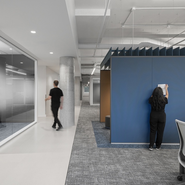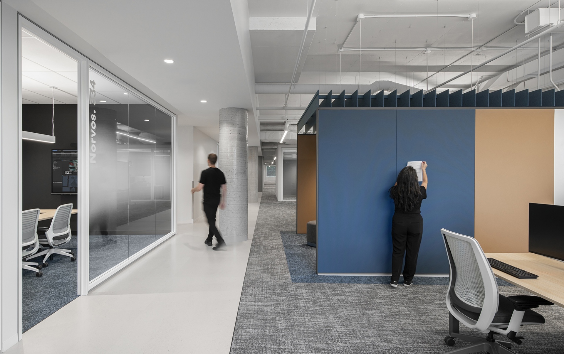Design de 2 étages à bureaux pour Genetec, à l'édifice BAN3 à St-Laurent, Canada